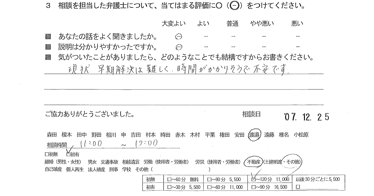 現状 早期解決は難しく、時間がかかりそうで不安です。